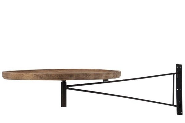Prachtig deze muur tafel draaiend, kan je op elke hoogte hangen, zodat je dit kunt gebruiken als bartafel of zittafel. De houten plaat van mango hout kan je eraf draaien, zodat je deze bij buiten gebruik steeds kunt opbergen.