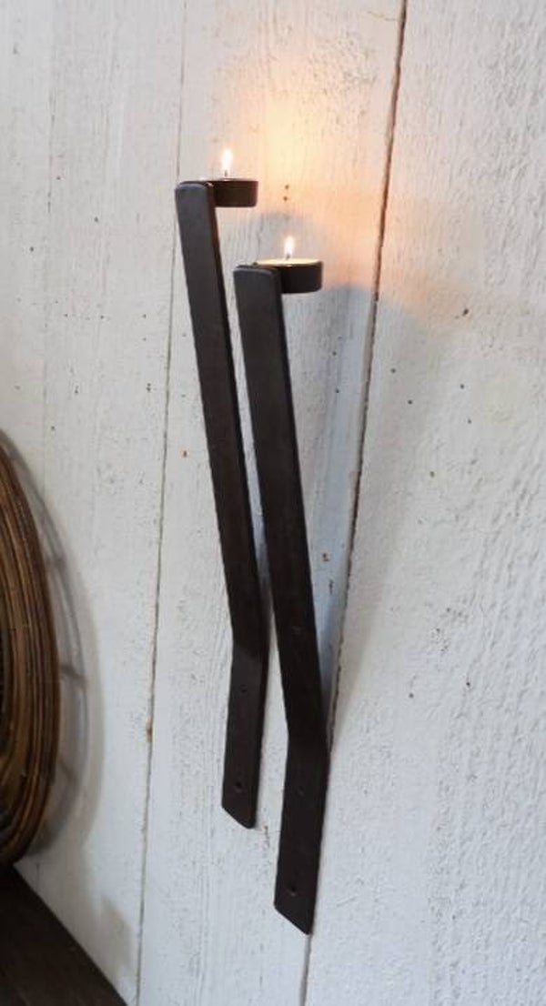 Prachtige smeedijzere wandkandelaar voor waxinlichtjes, kleur is donker bruin, voor het oog bijna zwart!