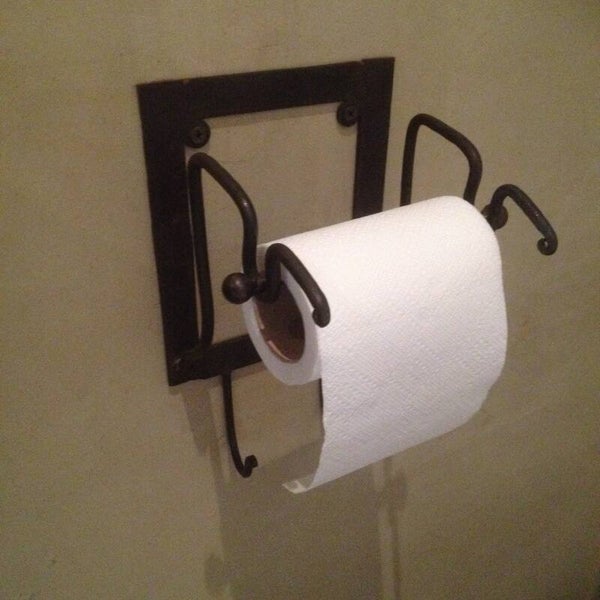 Elk item is uniek, de toiletrolhouder die u krijgt zal daarom iets afwijken van op de foto. De haakjes hangen niet helemaal symmetrisch in het midden of zijn hoger en lager.
