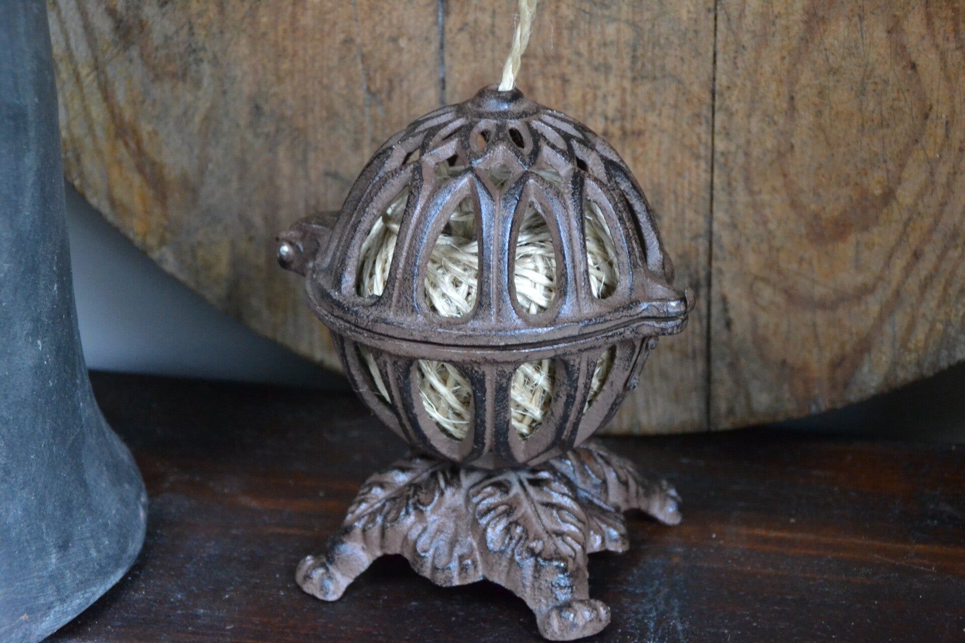 Decoratief en praktisch tegelijkertijd: De gietijzeren houder zorgt er niet alleen voor dat het benodigde touw voor werkzaamheden altijd paraat staat en touw blijft netjes opgerold!