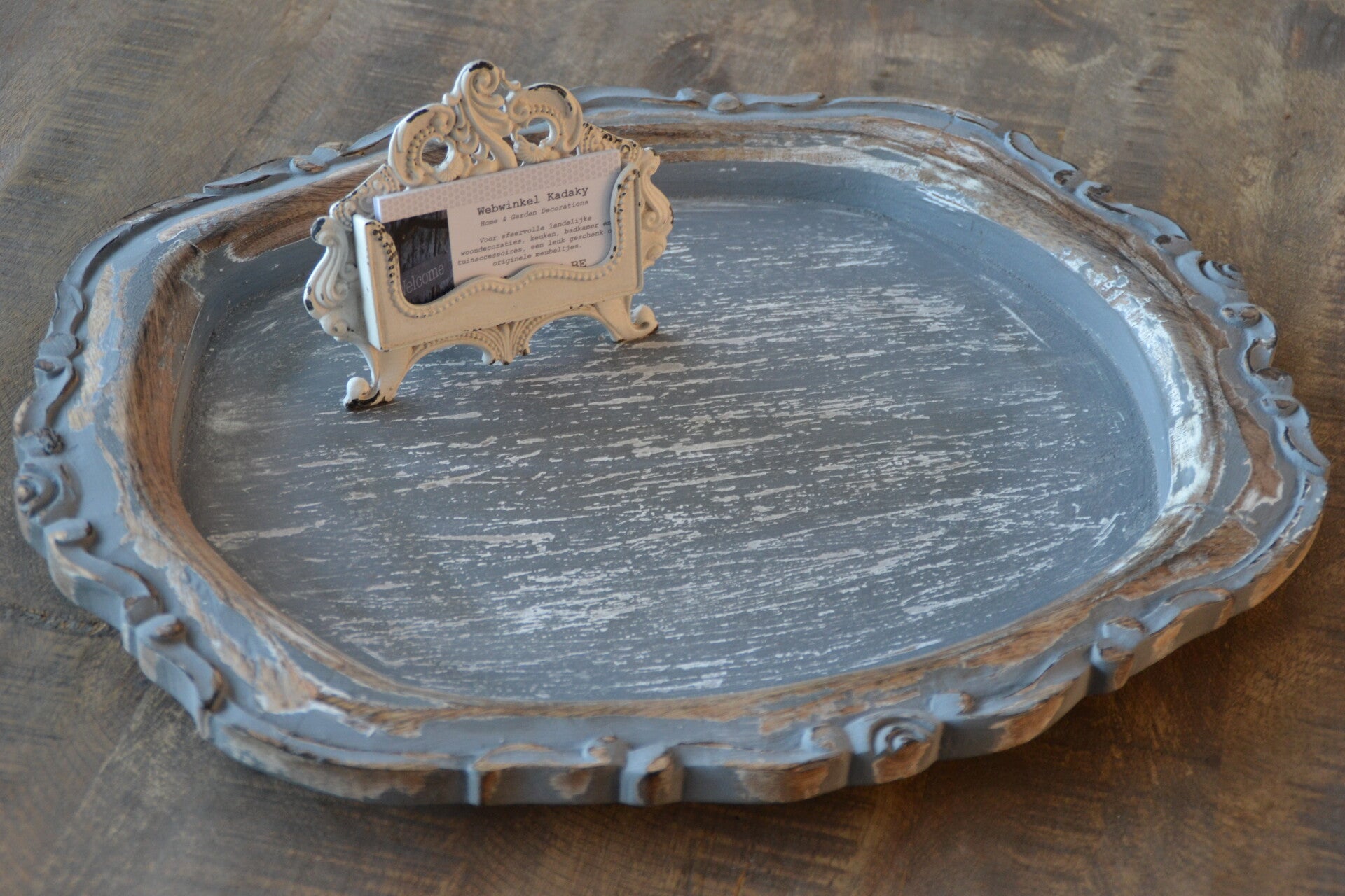 Verouderd dienblad in massief mango hout.