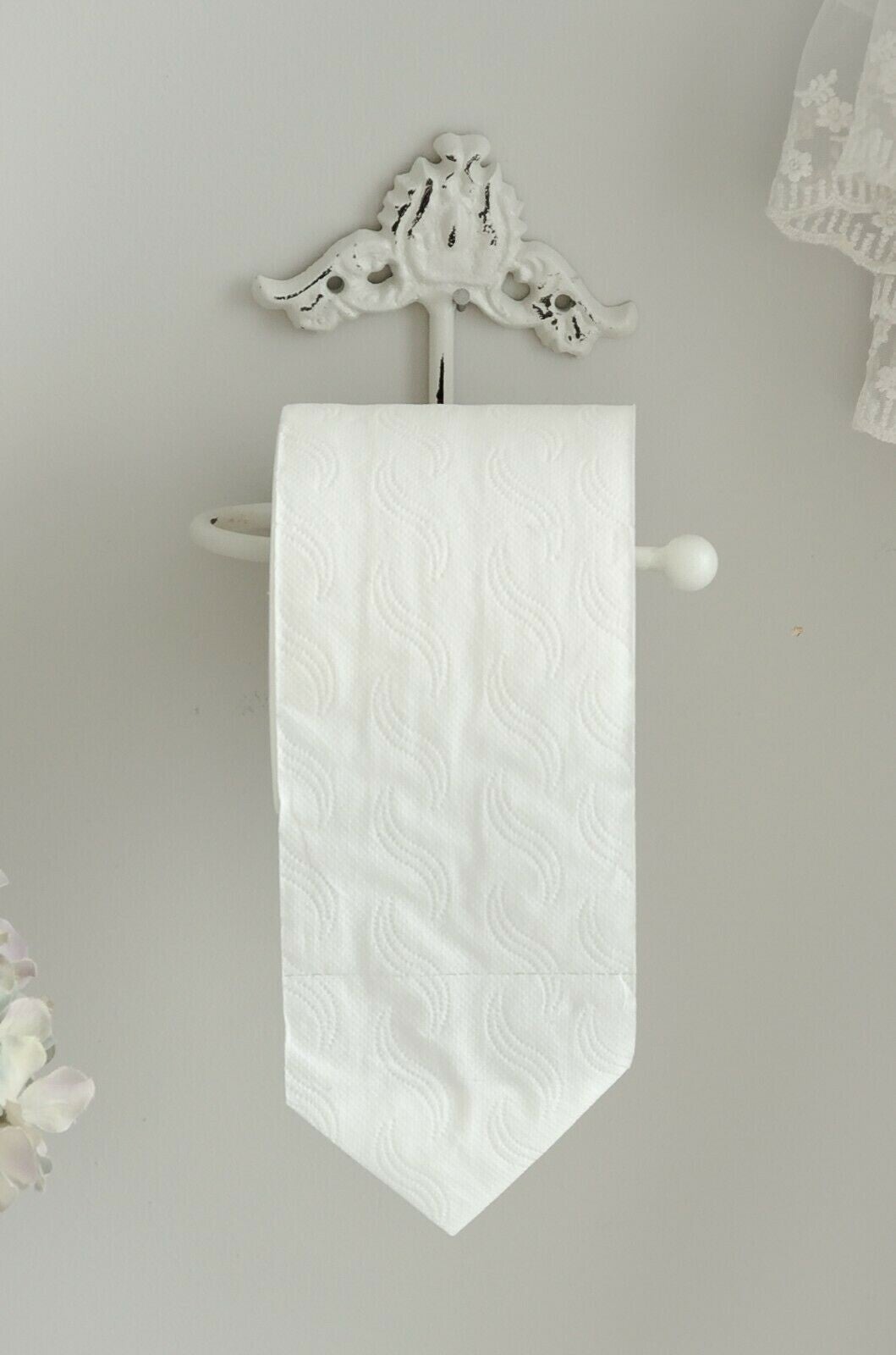 Zeer fraaie toiletrolhouder in antique white gietijzer voor aan de muur te bevestigen. De WC-rol is heel makkelijk te vervangen.