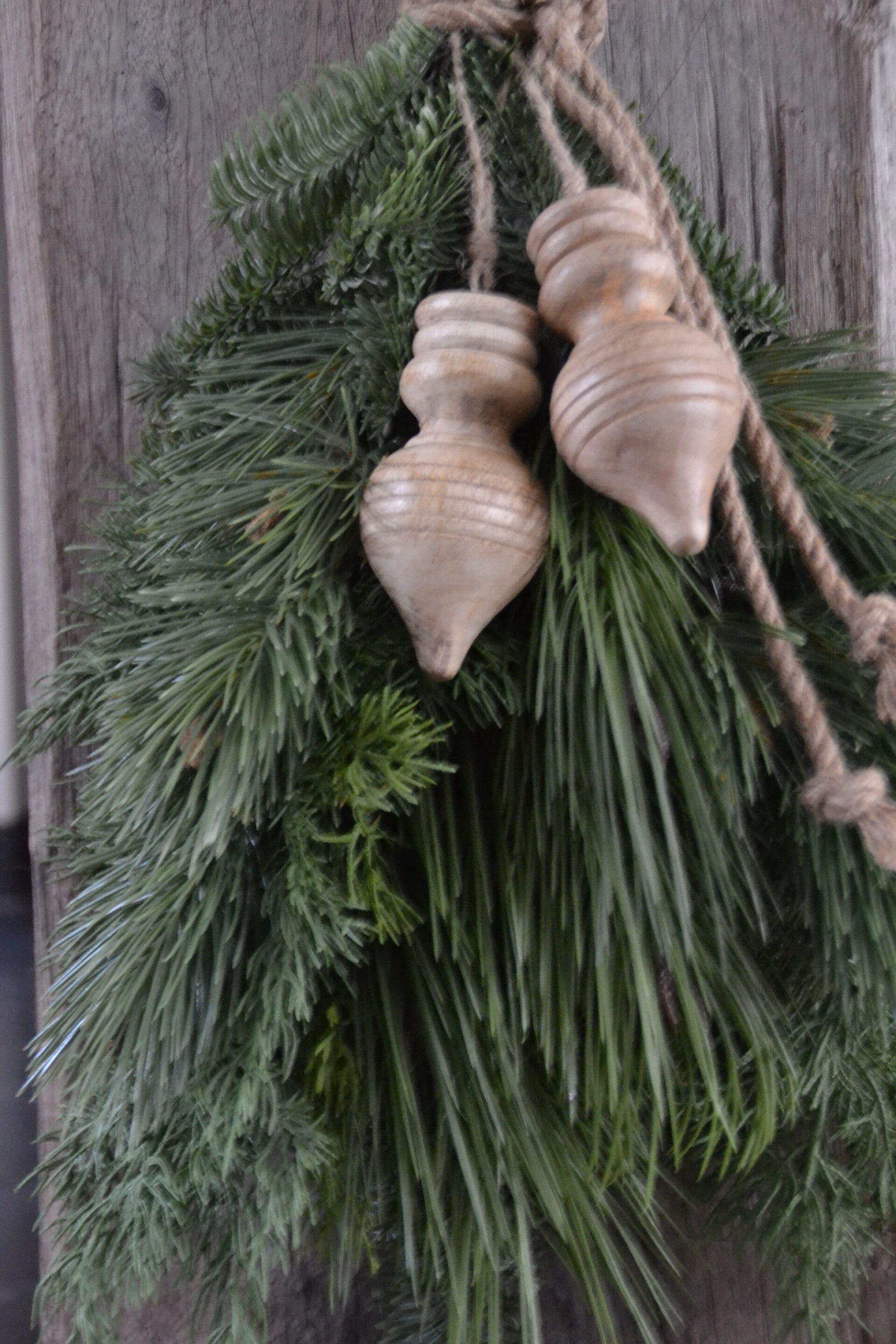 Prachtig grote mooie Kerst toef inclusief 2 massief houten klossen, kant en klaar kunsttakken handgebonden met stoere dikke touw
