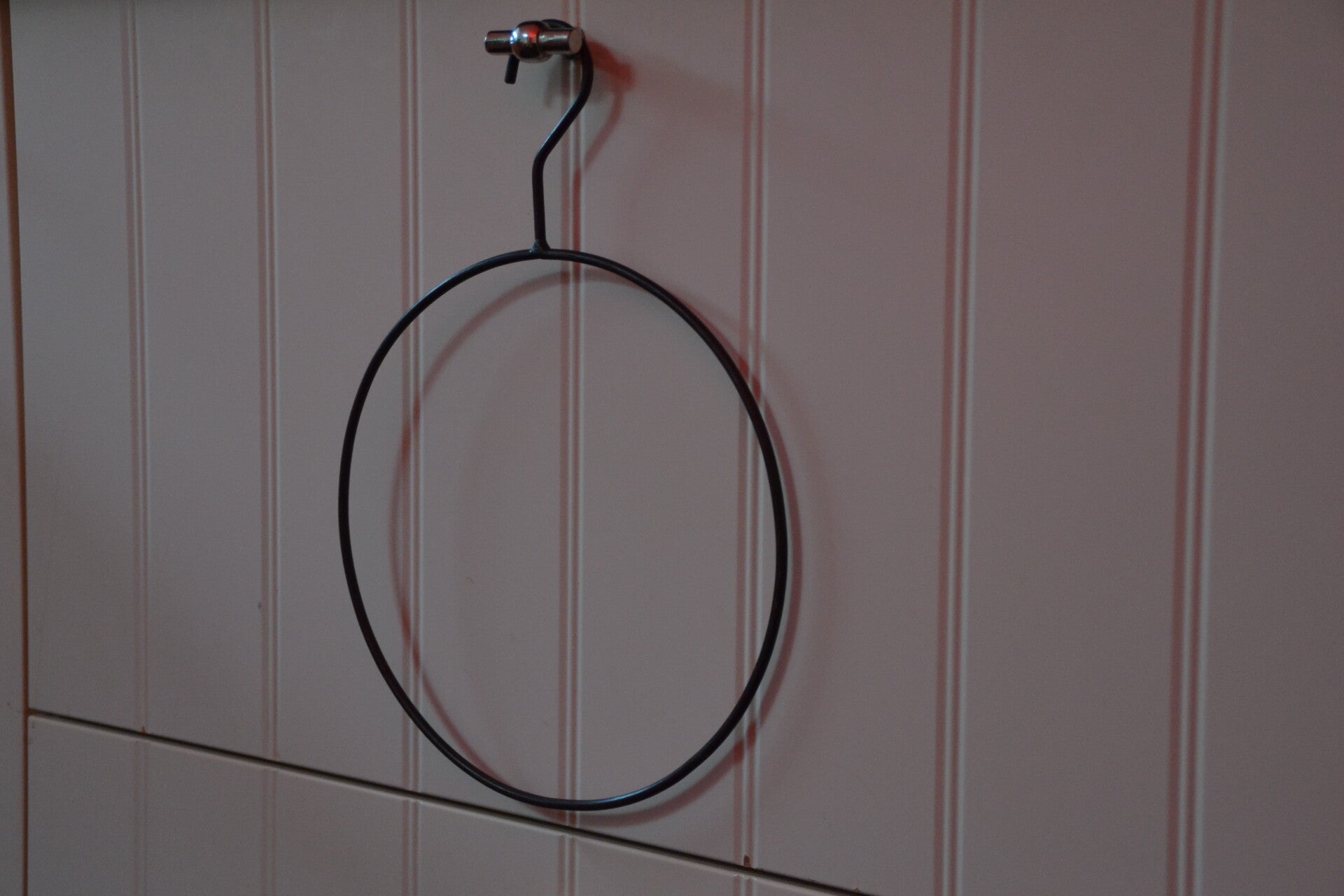 Dankzij de handige haak op de ring kan hij gemakkelijk aan bijvoorbeeld een kledinghanger worden gehangen, eventueel om sjaals op te hangen, maar zeker ook eventueel te gebruiken als gastendoek hanger