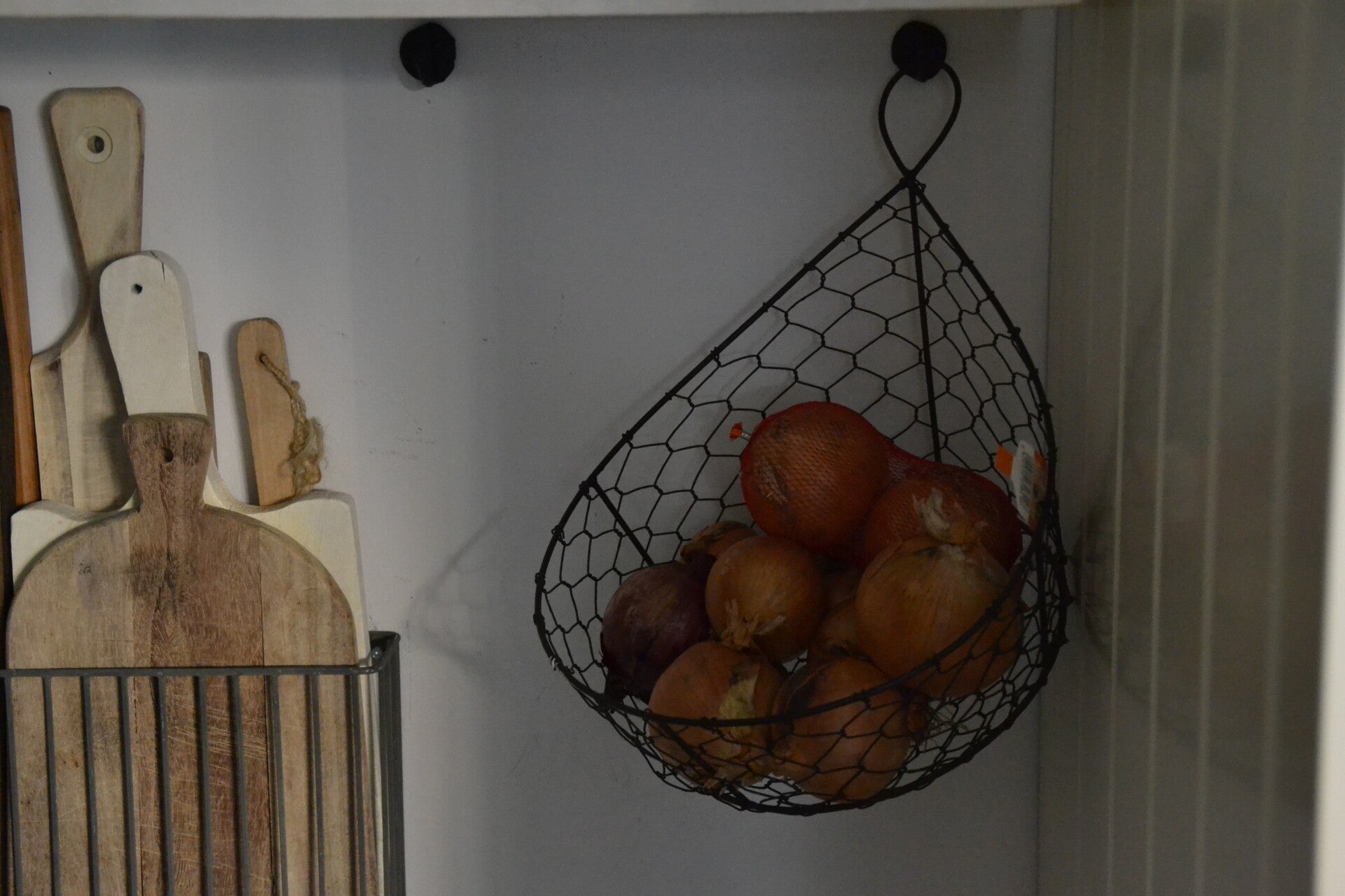 Prachtig mandje, ideaal om fruit, ajuin in te bewaren.