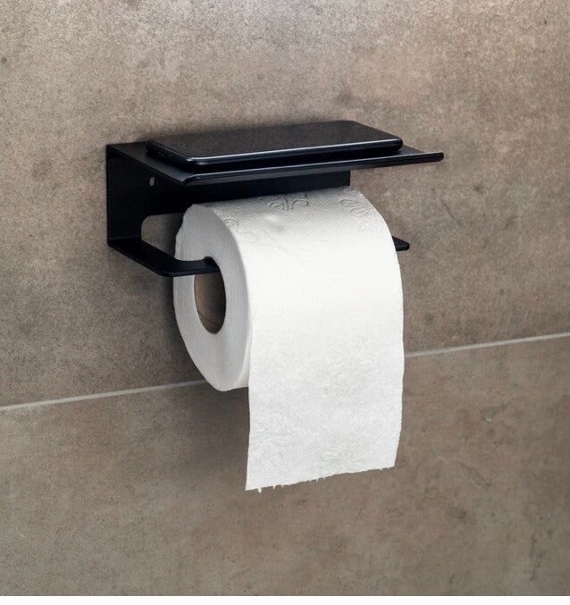 Toiletpapier-rolhouder plankje -zwart metaal- puur/sober landelijk