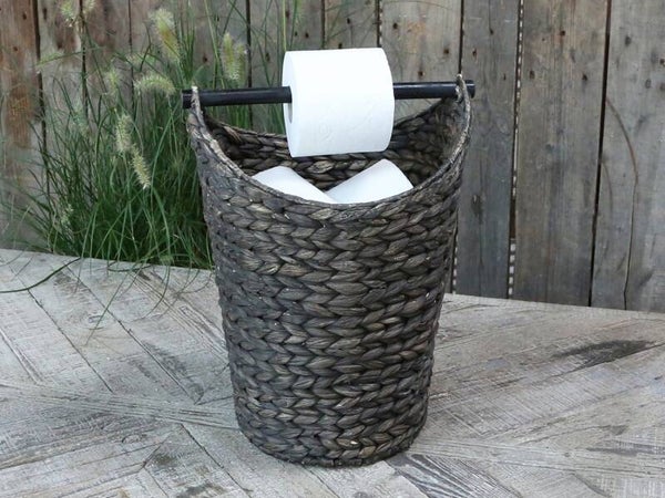 Toiletrolhouder mand in donker nature kleur riet incl. reserve ruimte voor extra rollen wc papier, past erg mooi in een sober interieur.