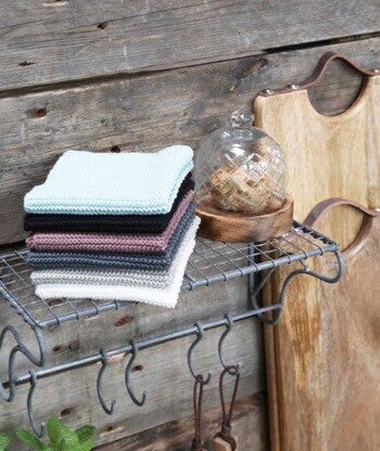 De wandrekje bestaat uit 5 haken en een apart rek erboven, gemaakt in oud ijzer zinc look grijs met verweerde plekken. Hierop kun je heel handig potjes plaatsen, een decoratieve toevoeging in de keuken, badkamer...