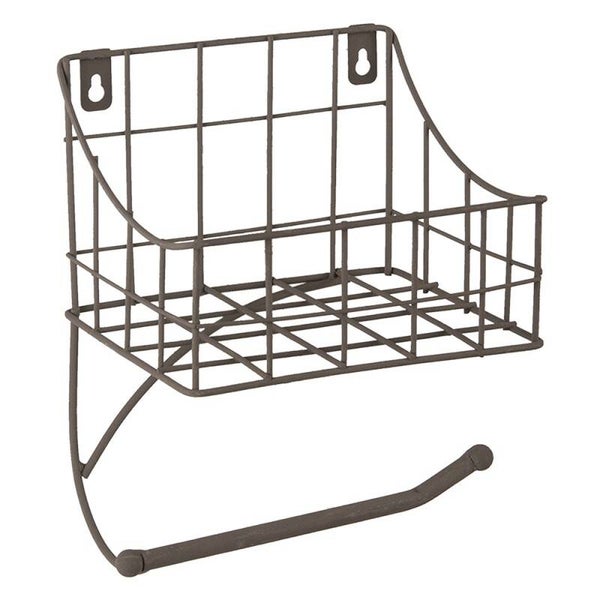 Toiletrolhouder met Mandje -metaal bruin- Landelijk