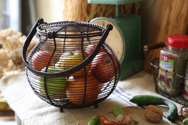 Prachtig dit oud eieren mandje in bruin ijzer met deksel, kan je zowel hangen als staand zetten.