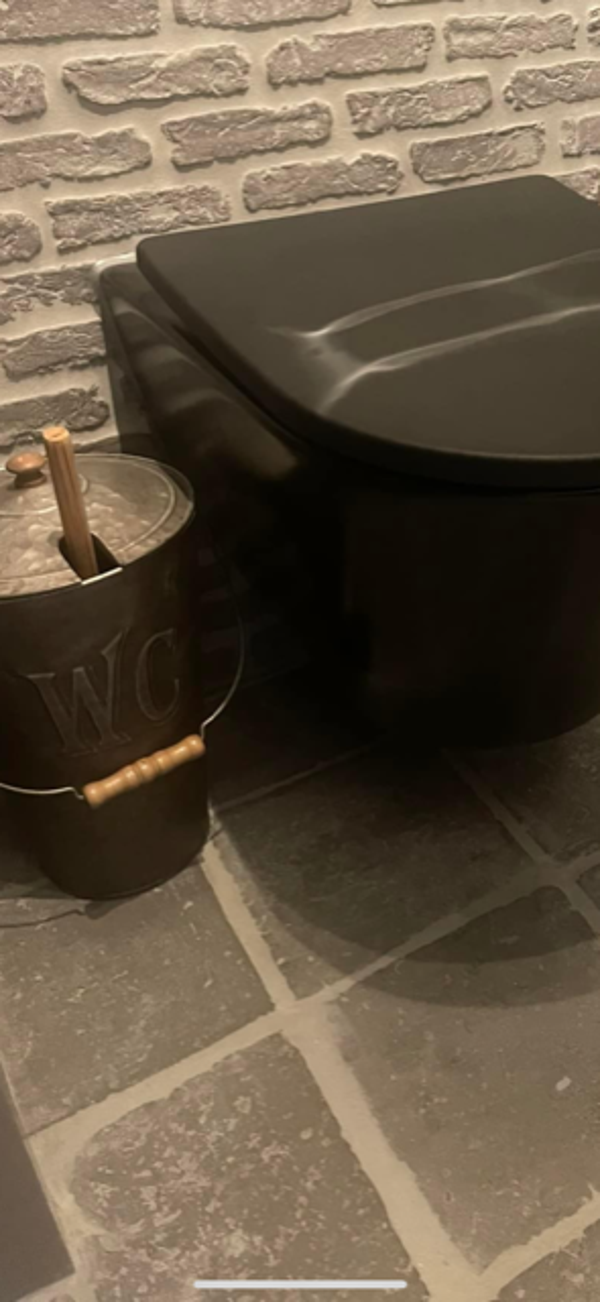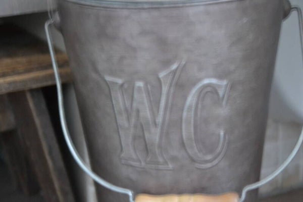 Prachtig deze WC borstelhouder in vorm van een emmer met deksel en reliëf opdruk WC. Incl. houten borstel + glazen vaas voor in de emmer te zetten, zodat u deze heel gemakkelijk kunt uitkuisen.